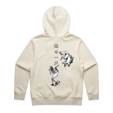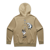 Pullover hood, CVC fleece, inset sleeves, self-fabric hood lining, 2x2 cuff and hem ribbing